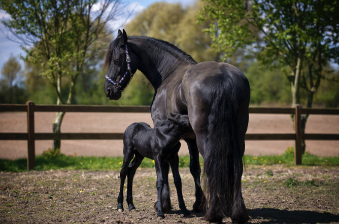 Bij een klant van mij werd een gezond merrieveulen geboren na een vlotte bevalling. De merrie was wat gespannen, alert en stond amper stil om het veulen te laten drinken. We hebben toen op zachte wijze ondersteuning geboden: